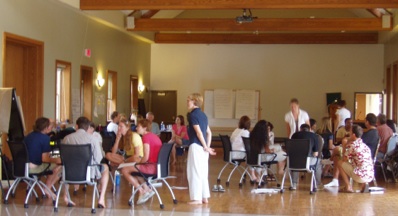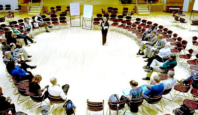 The basic principles (briefly stated,below) reflect the total openness of the format. What I find particularly relevant is the “law of two feet” which tells people to leave if they find they are neither learning nor contributing. This puts the responsibility on them to engage.