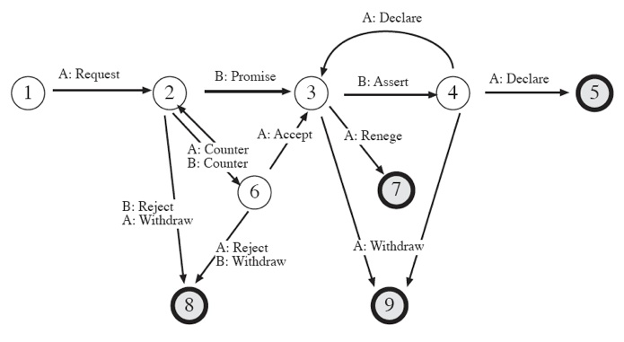 As a specific extension to the notion of speech acts, mentioned in Unit 8.1, Winograd and Flores developed a framework for the structure of requests and promises.